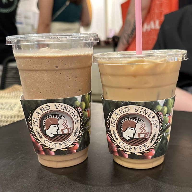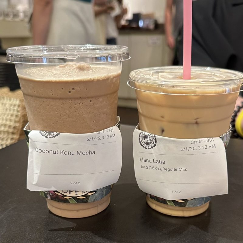 ドリンクはココナッツコナモカ$8.75とアイランドラテ$7.95を注文