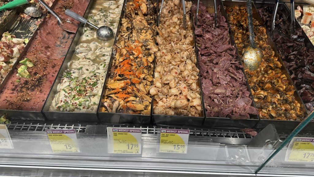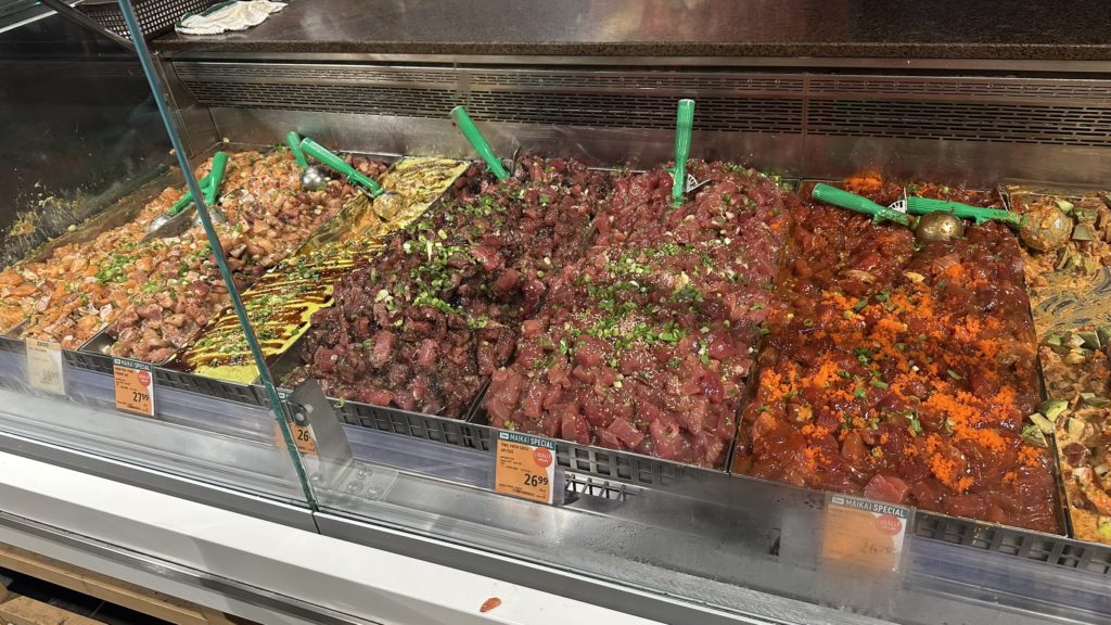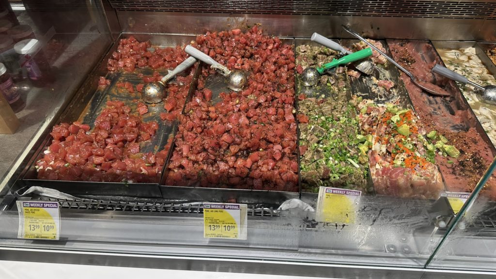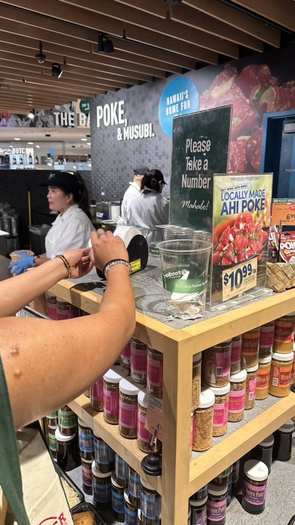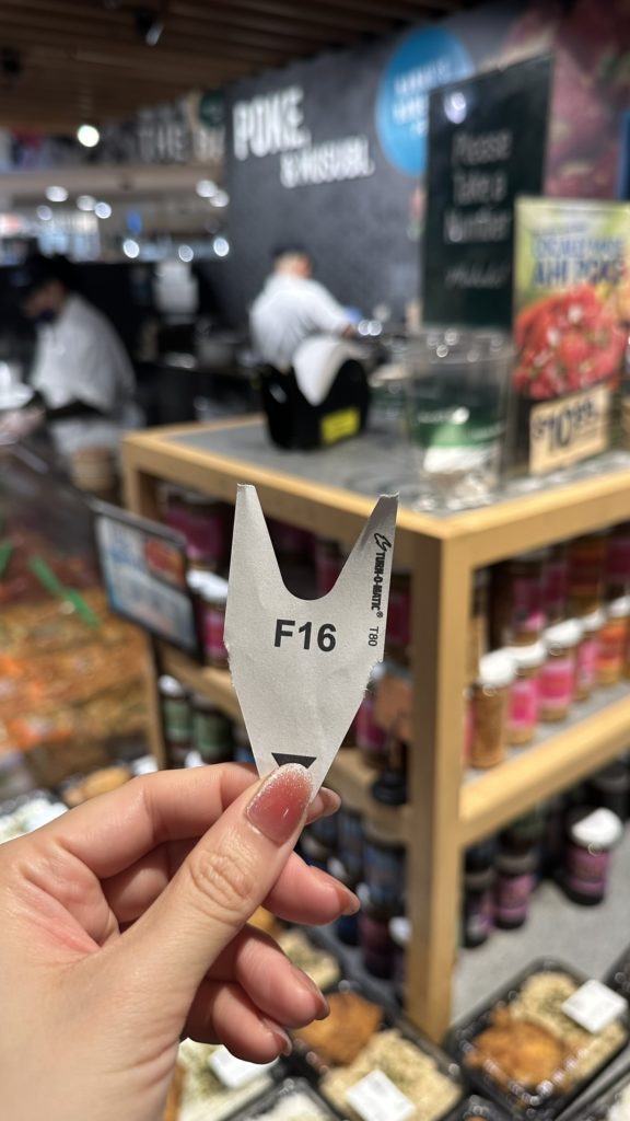 私達はPOKE AHI OYSTER SAUCE 1lb($11.19)とFRESH SALMON POKE half lb($16.72) 注文しました。